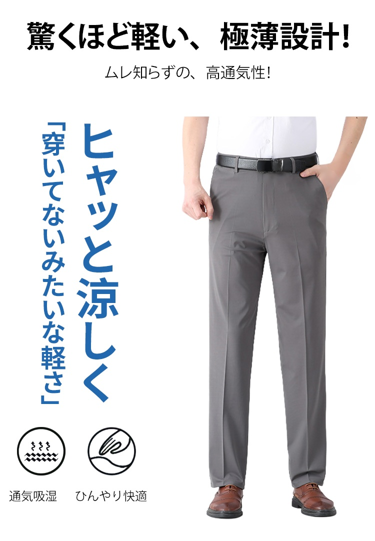 薄手 メンズスラックス 脚長効果 ストレッチ 通気速乾